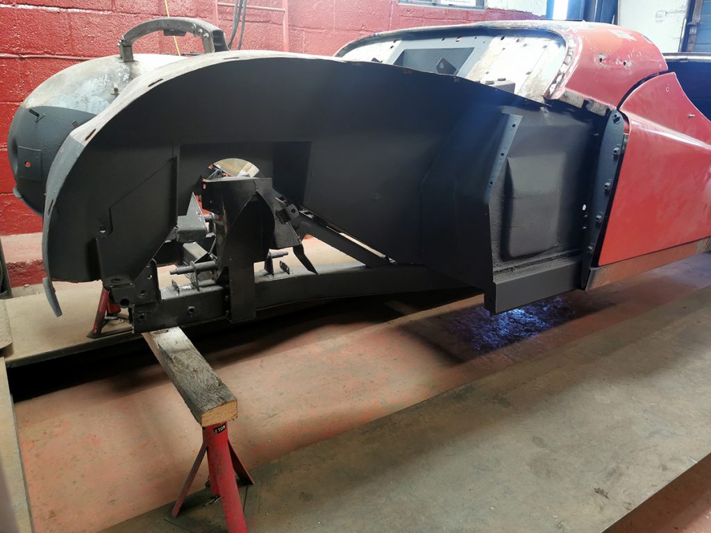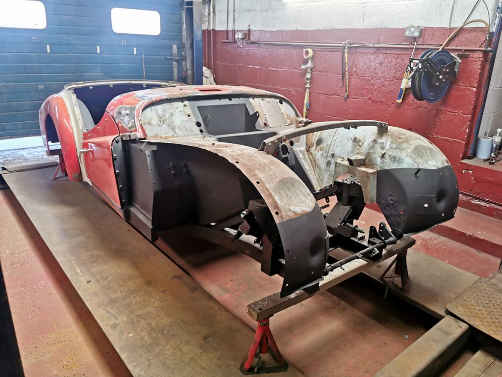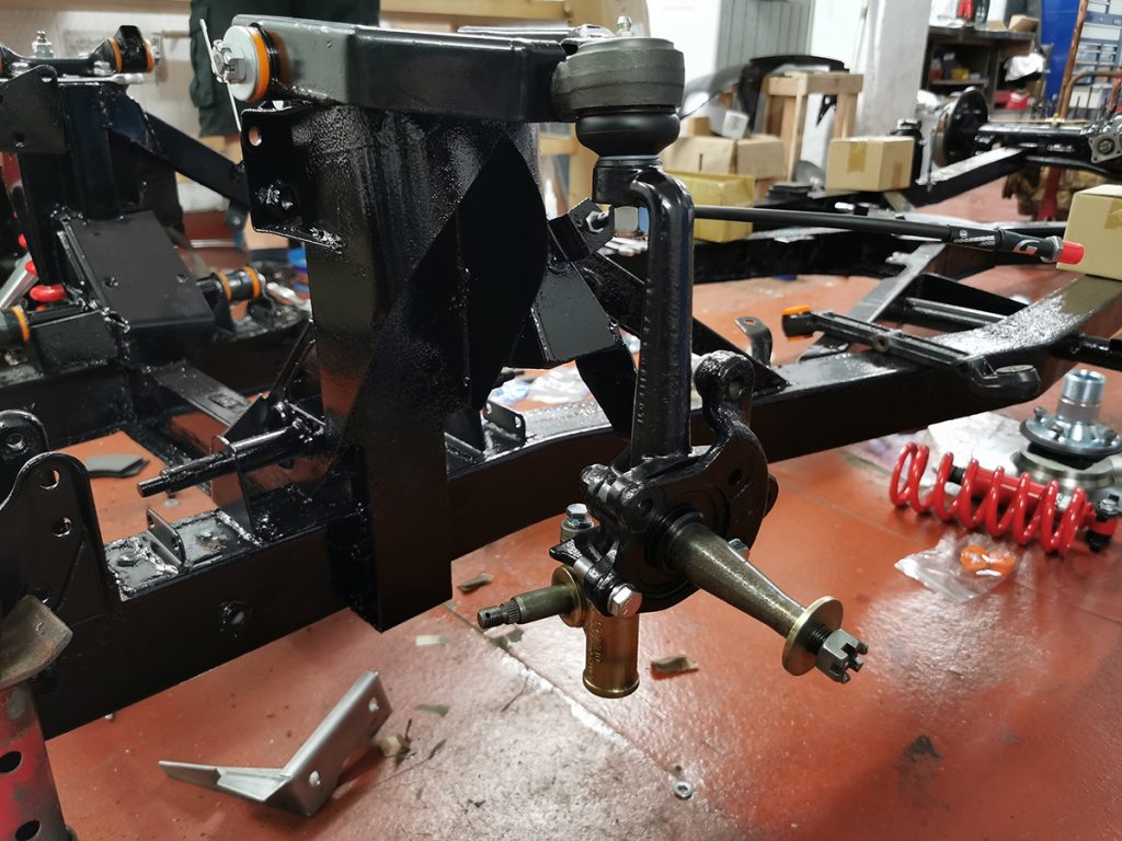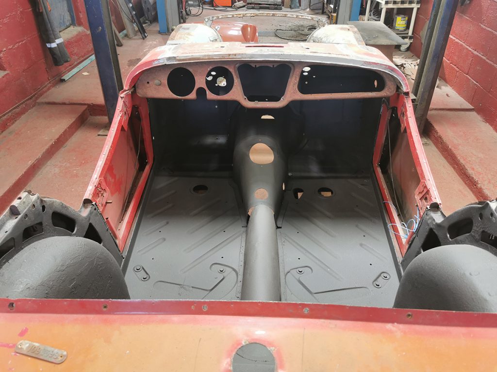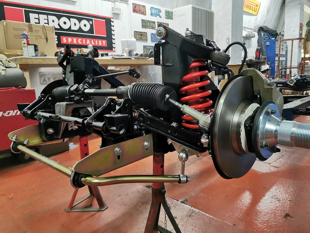We have stripped the vehicle down to a bare shell and chassis, then had the chassis blasted, primed, painted and rebuilt with all new suspension, braking and steering components. At this stage the customer requested various upgrades such as uprated coil springs, Koni shock absorbers, a front anti-roll-bar and a TR7 steering rack conversion.